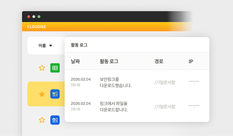 클라우다이크 보안 링크로 접근 통제와 로그 관리까지 한 번에 관리하세요.
