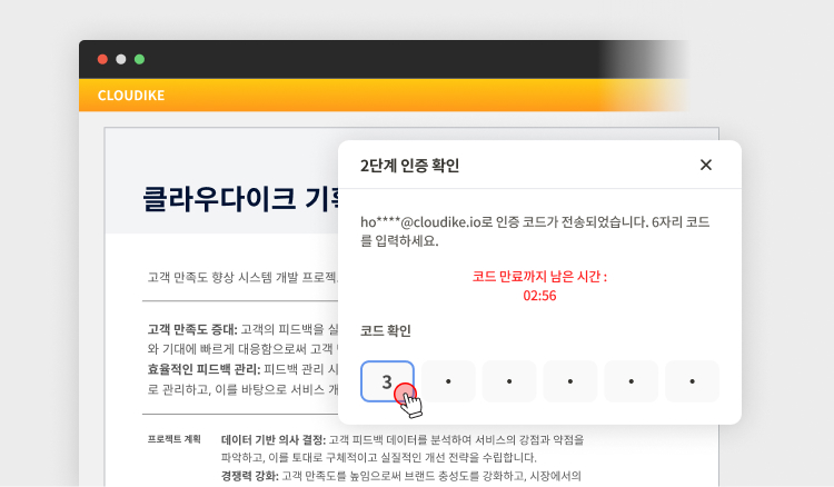이메일과 휴대폰 번호 기반 이중 인증을 통해 비인가 계정의 파일 접근을 최소화할 수 있어요.