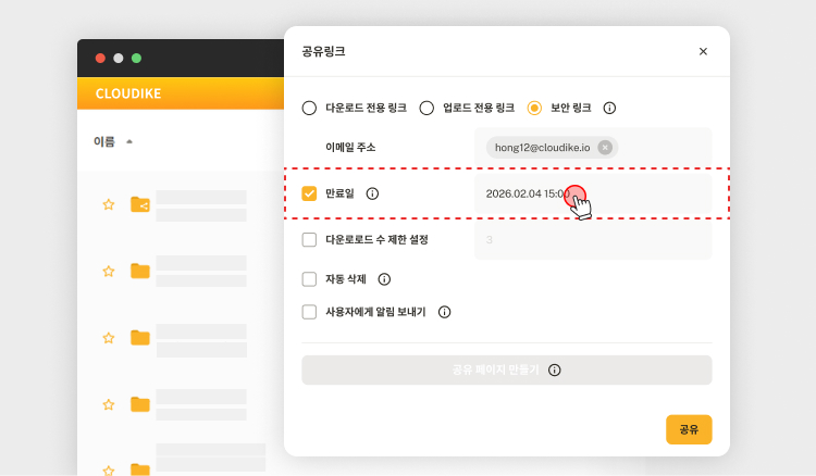 기간 만료 시, 수신자는 더 이상 공유 링크에 접근할 수 없게 돼요.